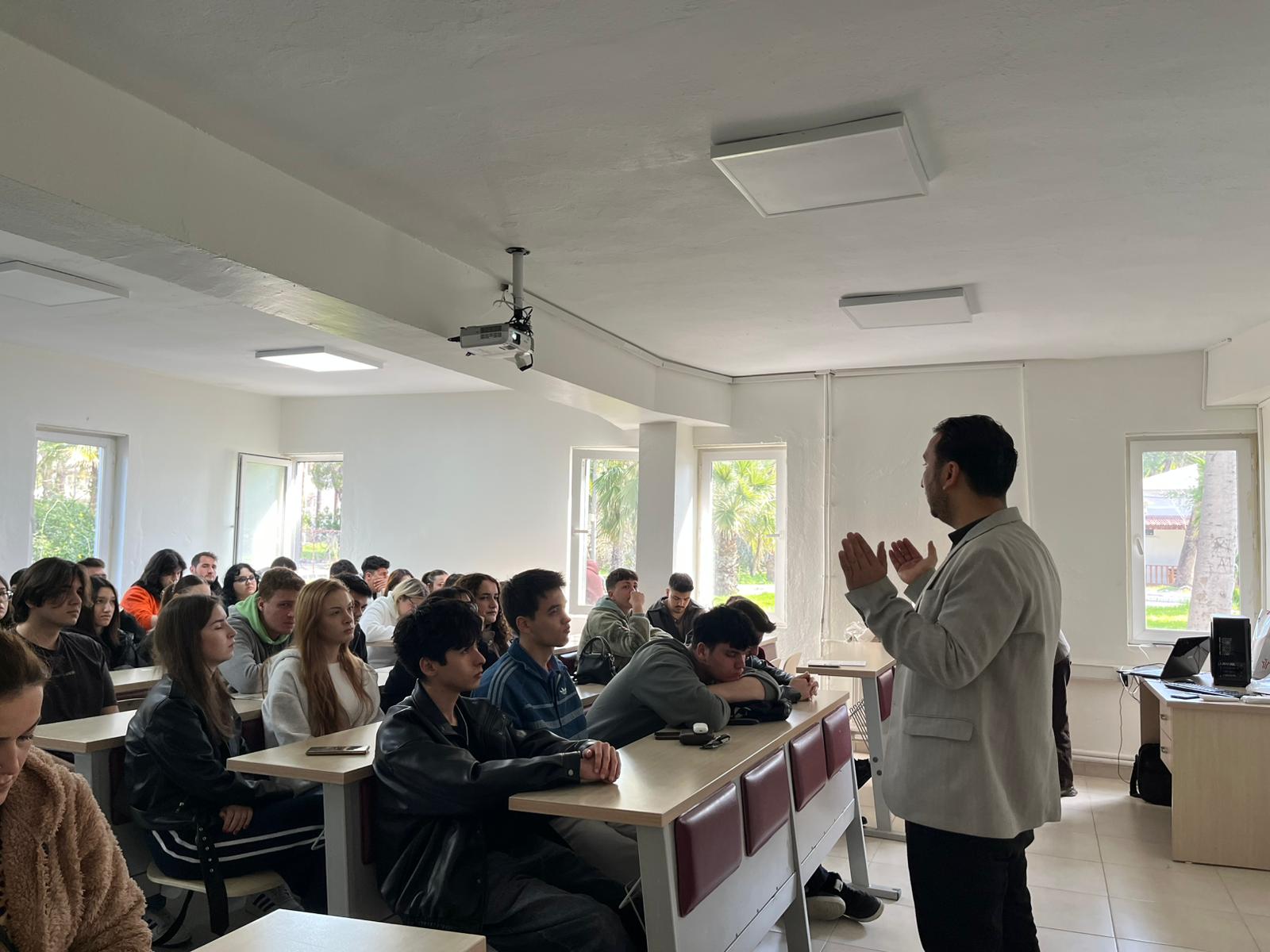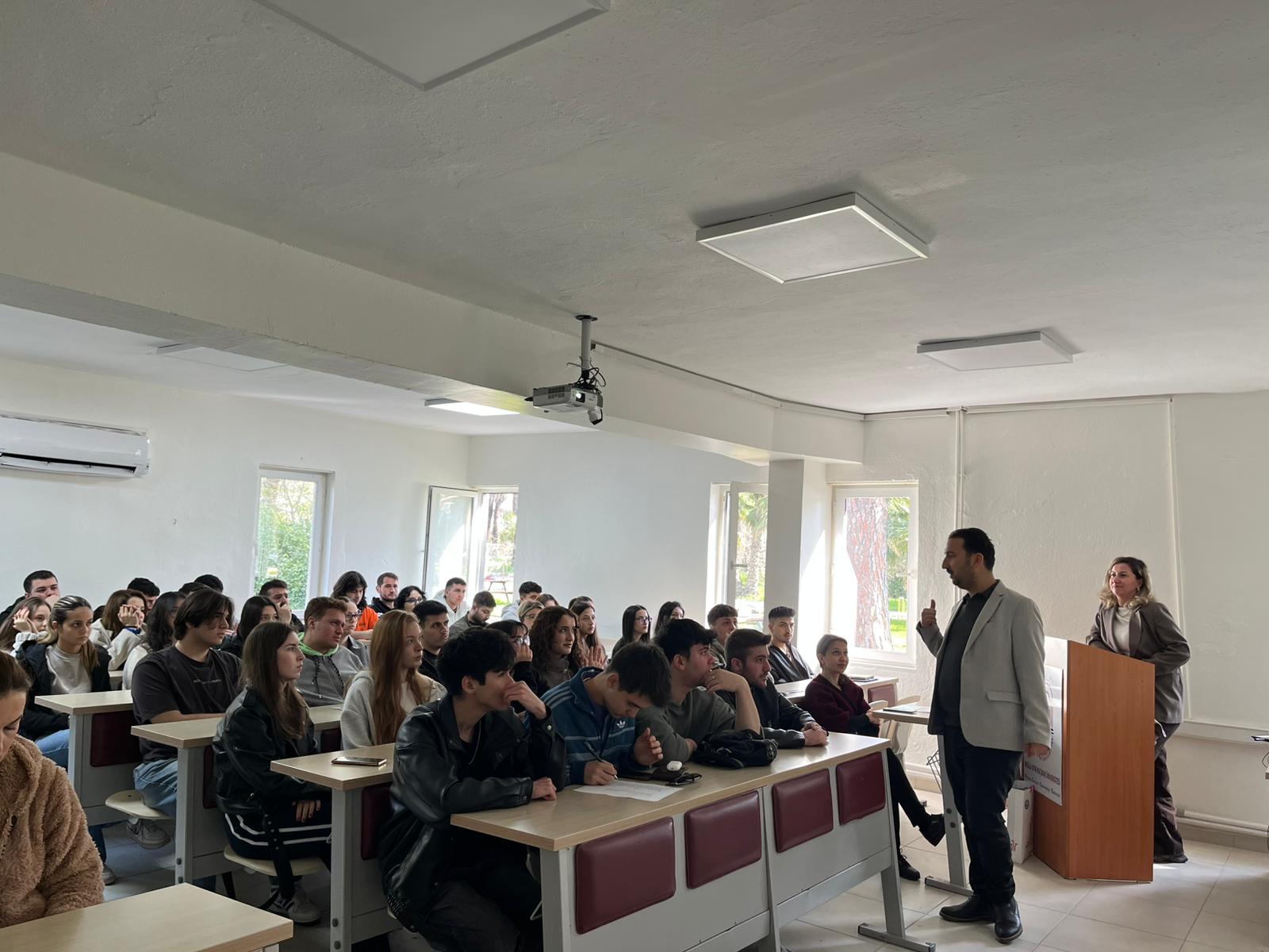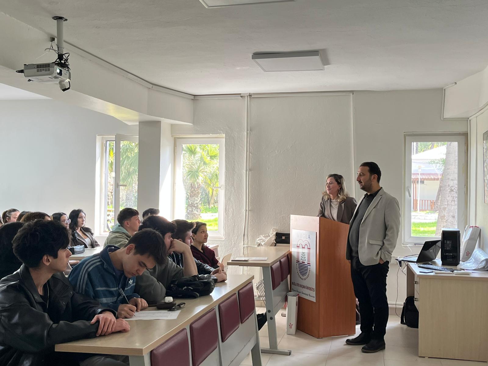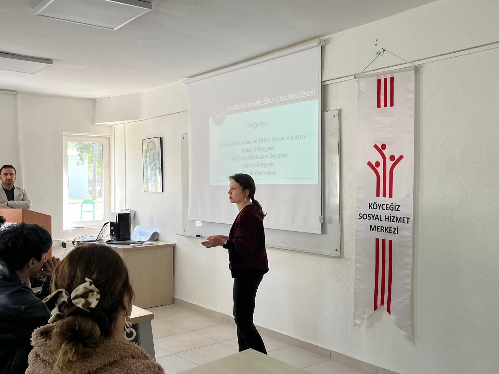 A conference titled "Awareness in the Fight Against Domestic and Gender-Based Violence" was held at Dalaman Vocational School. The event, which took place on March 3, 2026, at 11:00 a.m., featured speakers Emel Ayşe Üvez Çoban, Ramazan Dovan, and Güler Bıyık from the Köyceğiz Social Services Center Directorate. The conference addressed the social impacts of domestic and gender-based violence, protection mechanisms, and efforts to raise awareness. The program, which also included a Q&A session with participants, concluded with great interest from the students.